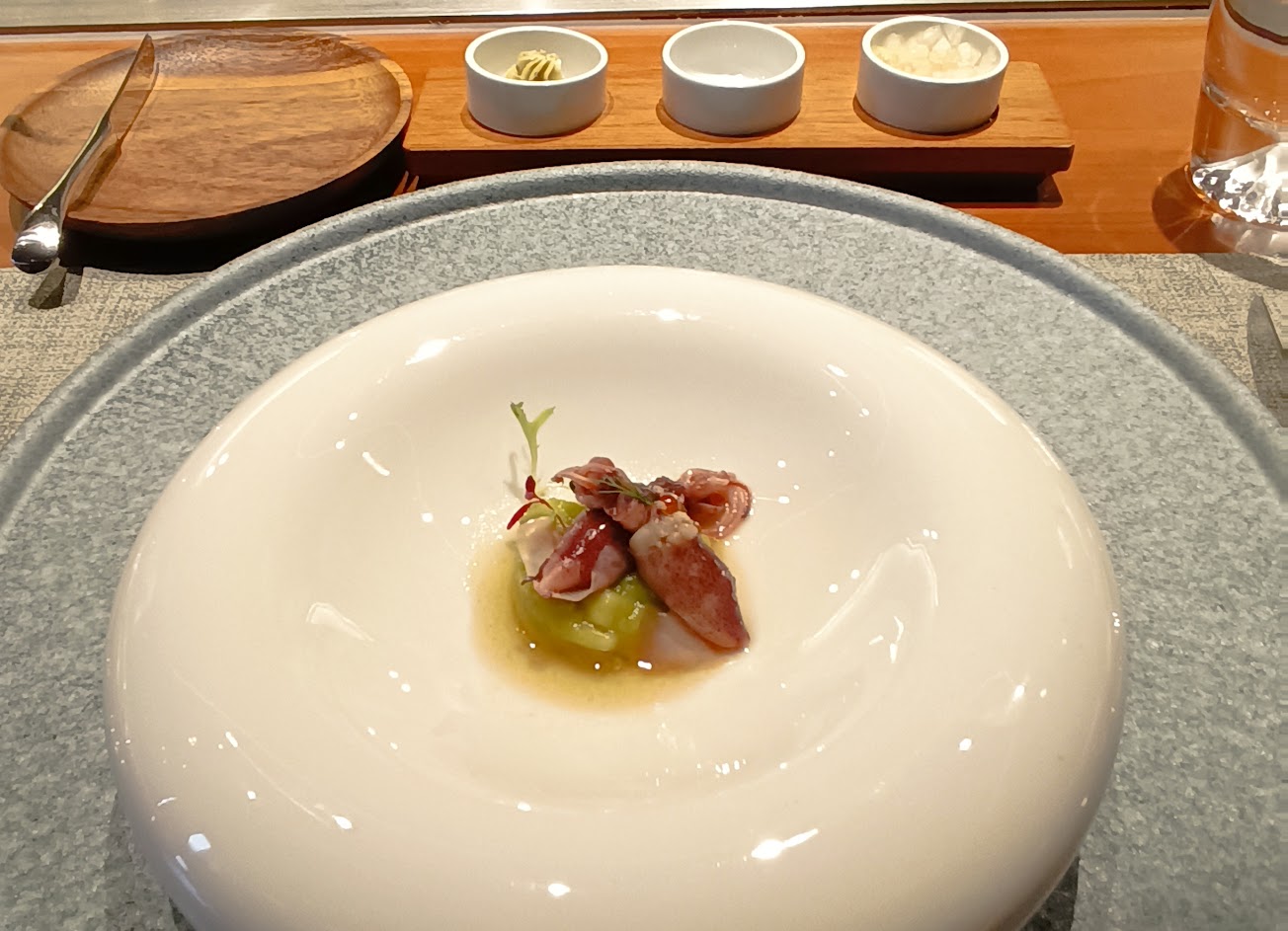 因為是無菜單料理,所以到現場才會知道有哪些食材。店員說大約三個月換一次菜單,本店和分店的餐點也會有些微的不同。