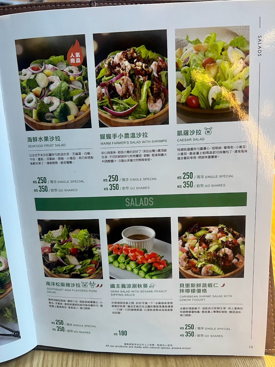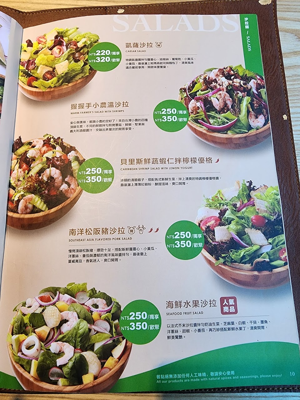 用餐需加10%服務費。