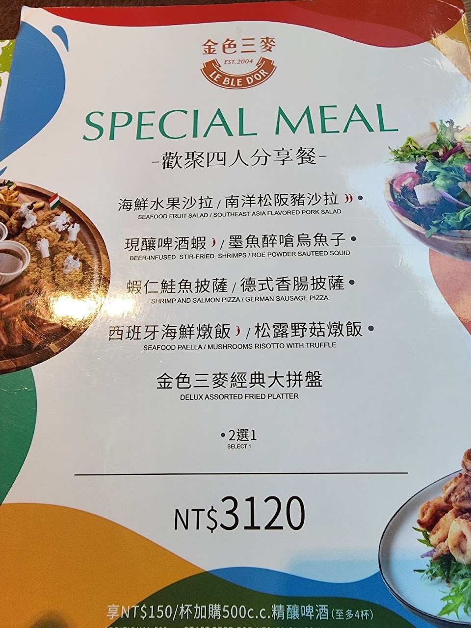 2024最新在地推薦餐廳的菜單_金色三麥 中壢SOGO店的菜單、圖片