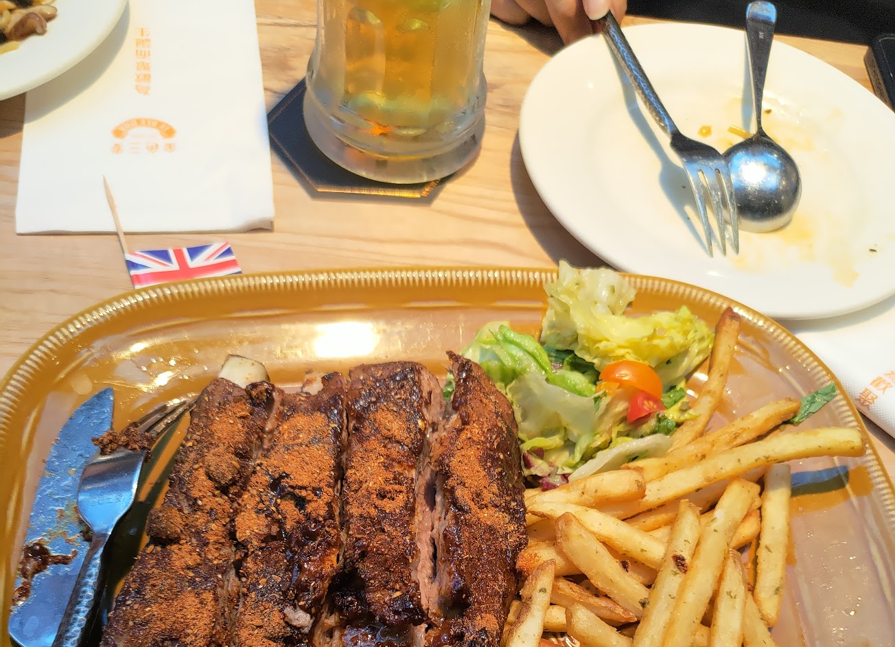 又等候了一下 果茶還沒上 服務人員卻直接上了壽星的蛋糕跟我們自備的蛋糕,當下我反應還有一個戰斧豬排跟果茶還沒上,服務人員回說你們不是說蛋糕可以上了嗎?(這可能是我們溝通上有問題,導致雙方的認知不同)(當下感覺鹹食都還沒上完就直接上蛋糕 很問號 但都上蛋糕了就上吧)送完蛋糕以後豬排跟果茶就上了