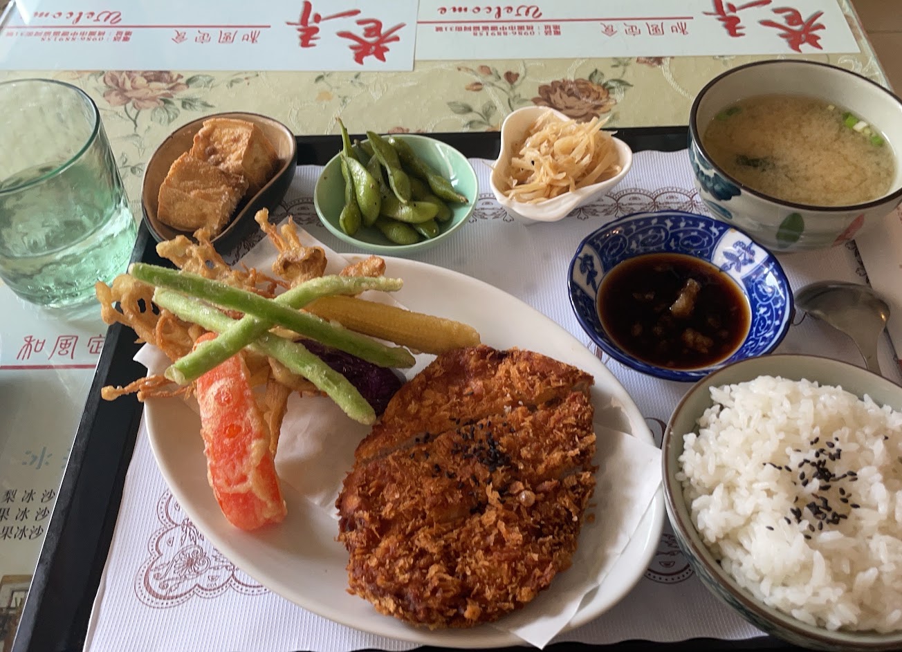 點了日式天婦羅定食,天婦羅脆而不油膩,還有炸菇菇,金針菇等等,好吃。