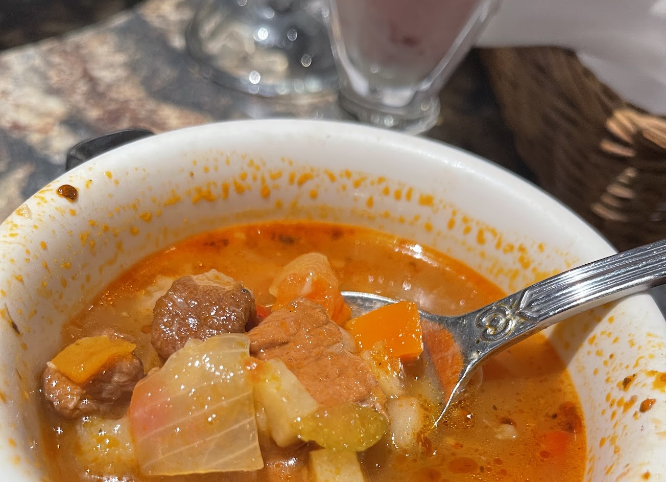 剛坐下看菜單的時候,服務員莫名其妙把3碗湯放在我們桌上且不發一語的就走了,詢問其他服務員也是一問三不知,飲料說好隨餐上也沒做到(第二次這樣了,最後提拉米蘇竟然是冷凍的,切不下去,真心覺得非常需要加強。