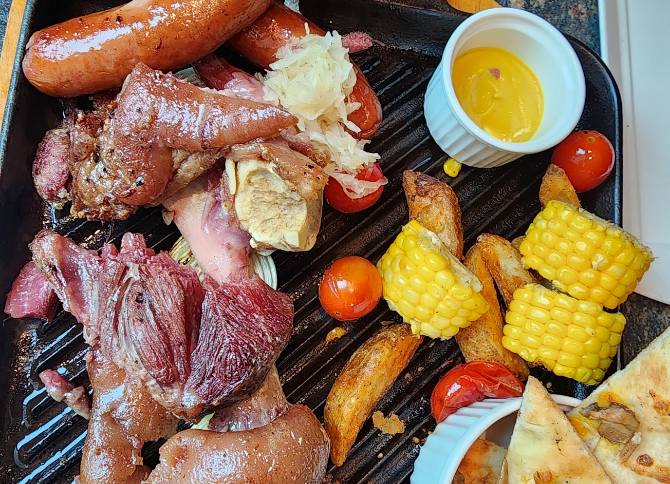 之前在過年前一週跟朋友來吃點了一份德國豬腳X帶骨香腸雙拼,還算不錯只是這份餐價格偏高吃不太飽。