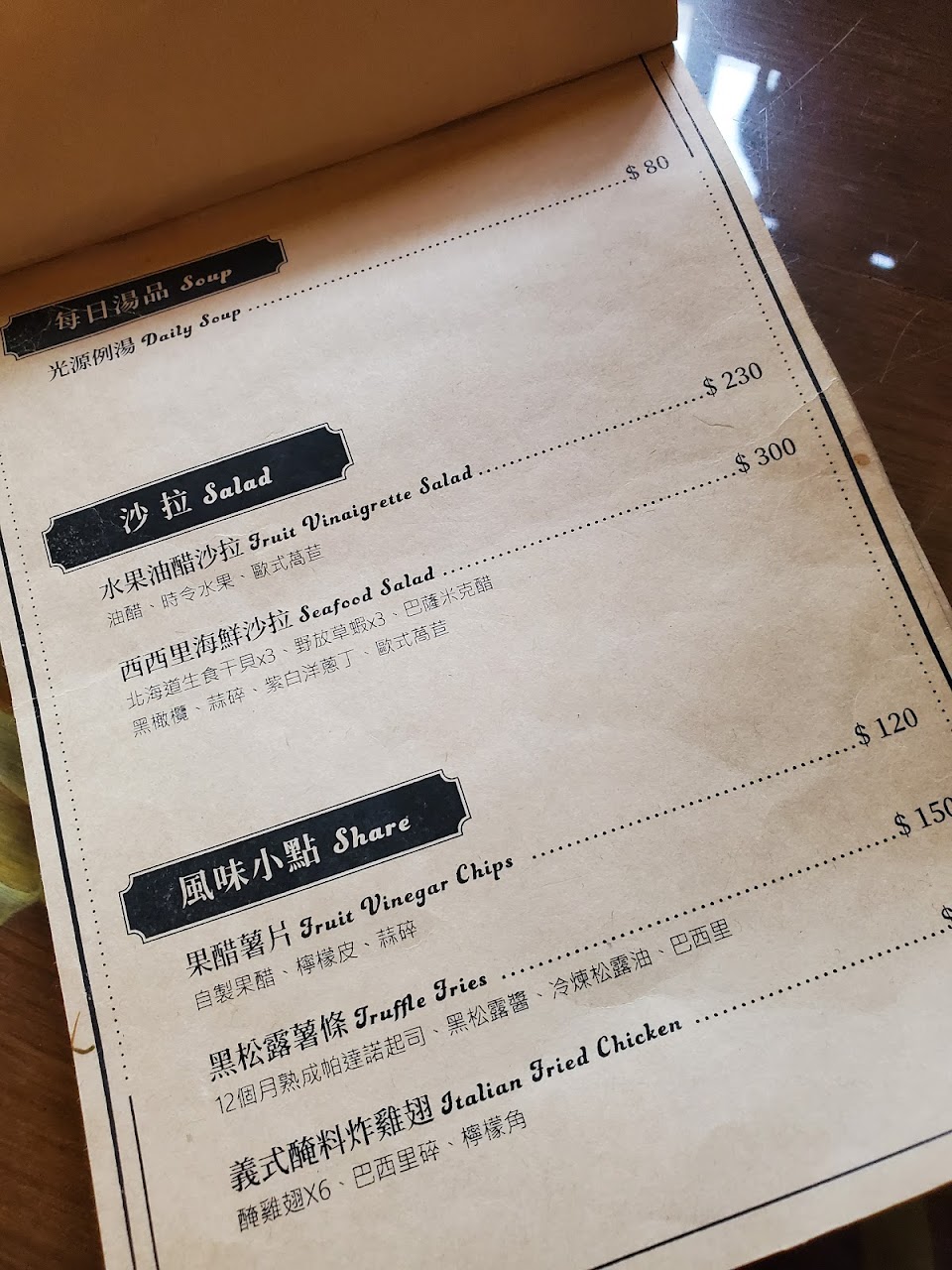 平日營業時間到下午五點,主要以簡餐為主,很可惜現在沒有提供窯烤披薩,天氣開始涼爽的早秋,假日用餐可以坐在庭園,享受溫暖陽光下的城市花園。