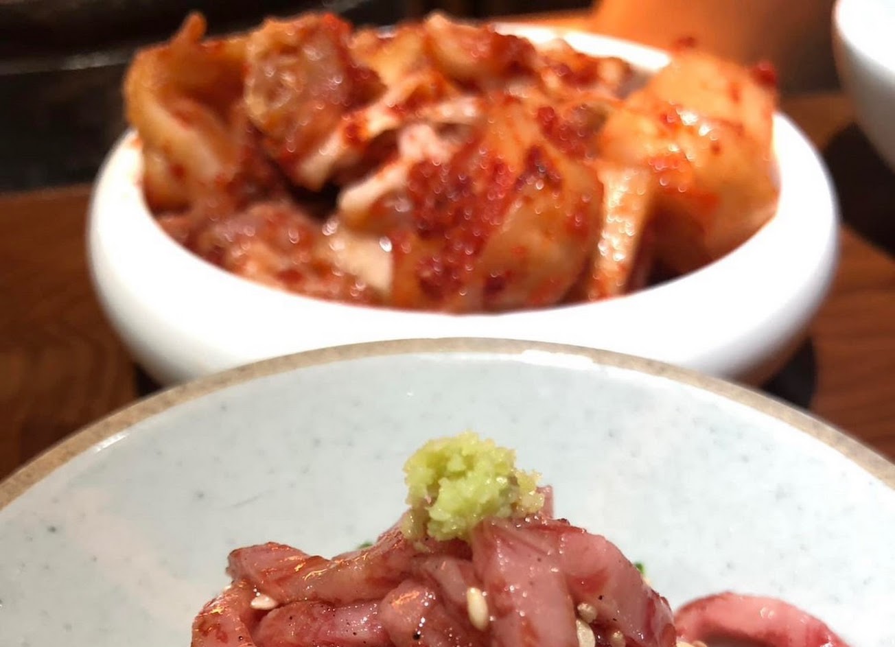 很有自己想法的服務生?我認為一個人3000真的非常不值得這個服務。五個人只給兩份菜單就算了,客人反應冷氣後,服務生說等下燒烤會熱,堅持不幫忙調小(重點是全程到結束我們都還是覺得很冷)有戴口罩但長瀏海一直甩甩甩,真的讓人覺得很不夠衛生⋯每道料理也不主動介紹還要客人每道料理自己一直問,回答又很不甘願十分敷衍,全程就在旁邊當木頭人聽客人講話等著烤肉,真的是非常影響用餐氛圍,很不舒服!還叫50幾歲的長輩「奶奶」真的讓人無話可說?根本無法好好跟家人聊天,整個心情都差掉了???