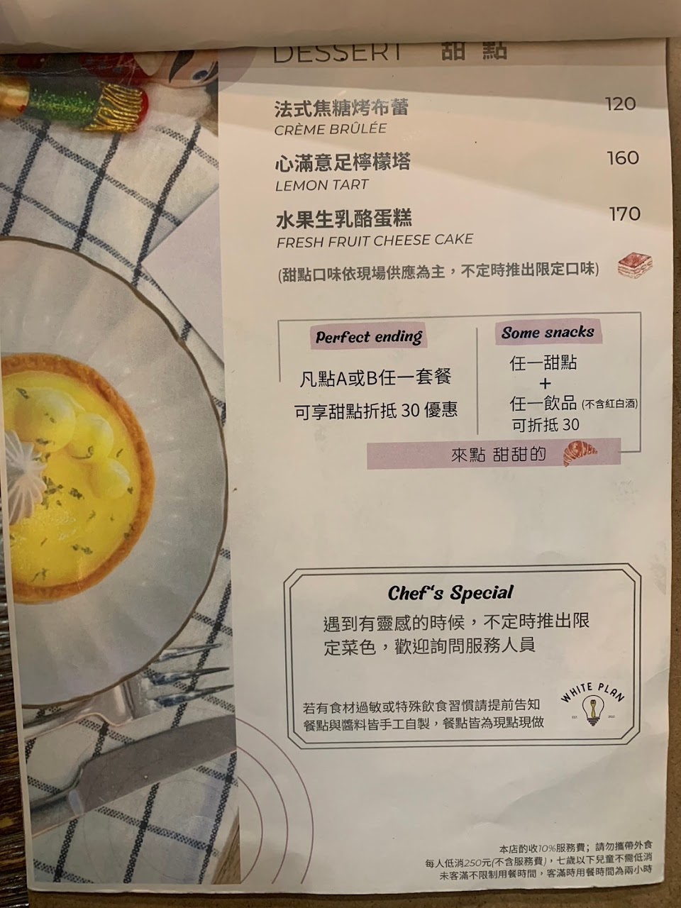 2024最新在地推薦餐廳的菜單_White Plan 白計畫 歐式料理的菜單、圖片