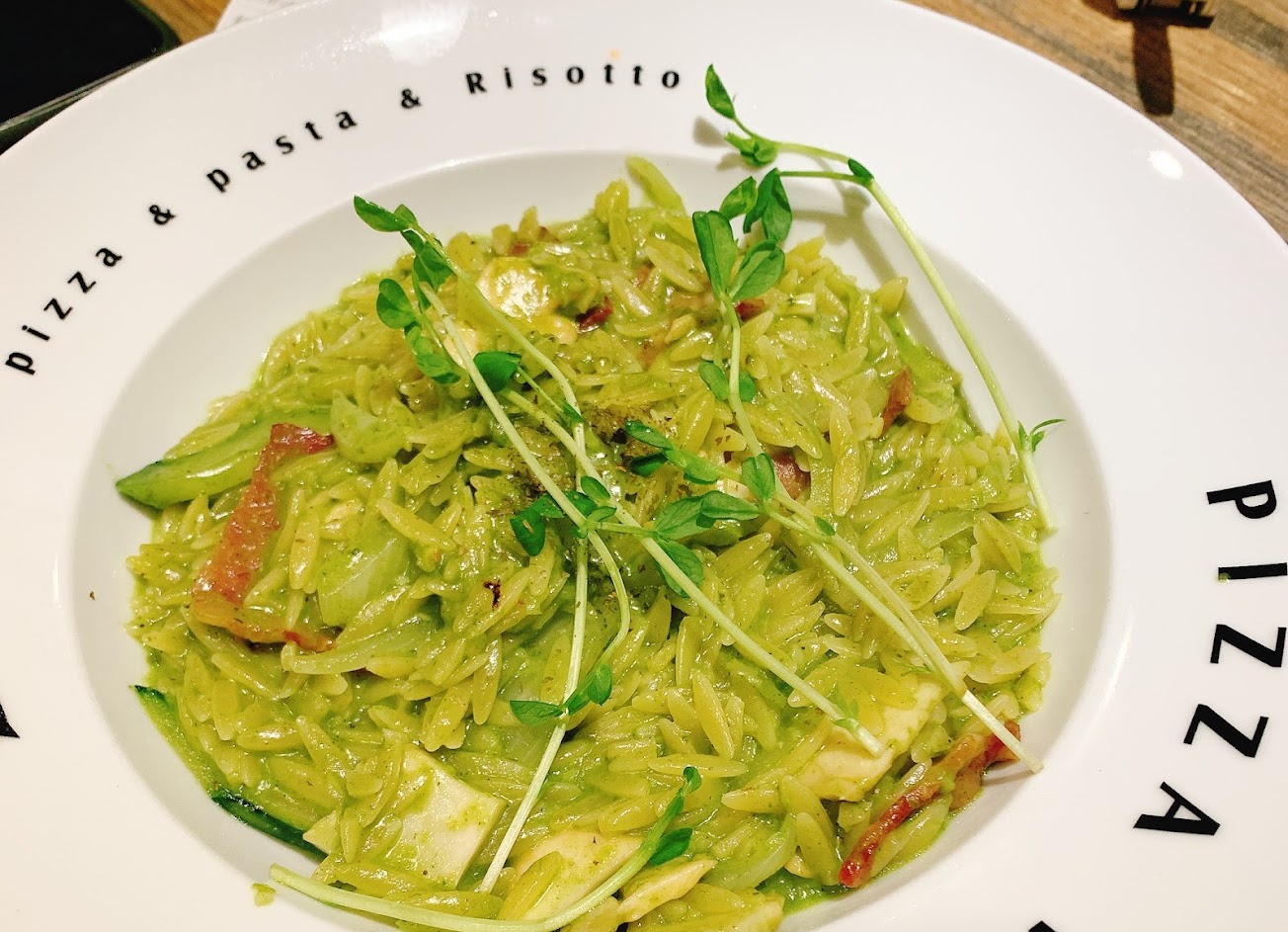 環境很乾淨舒適,價格比較貴,要加10%服務費,意大利面滿好吃的,披薩點了龍蝦沙拉還行,但吃多片容易膩,奶味的燉飯也是吃得有點膩。另外巧克力冰沙上面的奶油太水了,感覺很詭異,反映給服務生只說沒擠好,覺得沒有很好喝。前菜沙拉配芒果醬甜甜的很好吃,沙拉裡面有個脆脆的冬粉不錯吃。