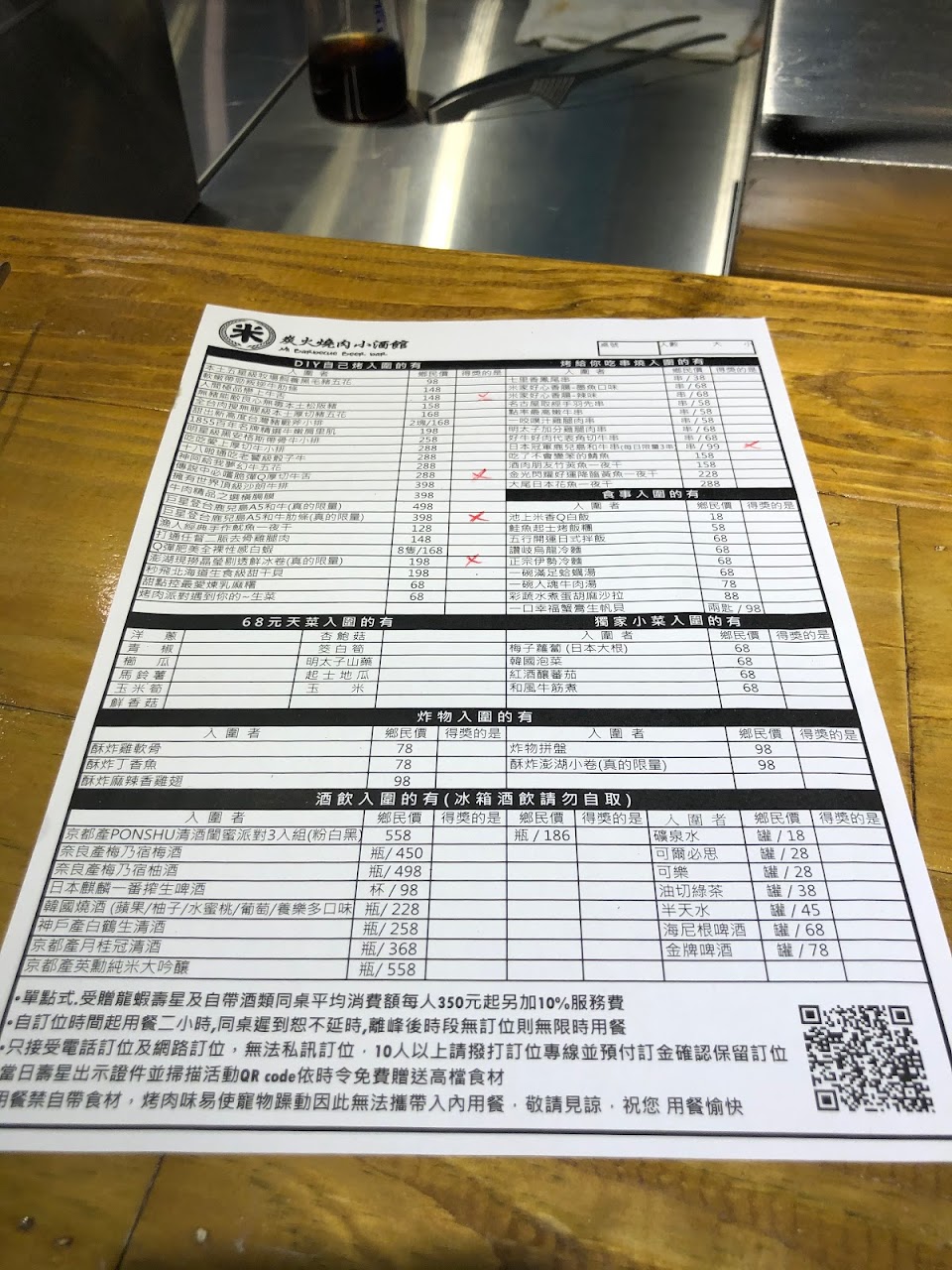 飲品價格極佛心,燒烤好吃美味,可惜太晚去了,烤串沒機會品嚐到,只能一切自己烤起來!但食材用心,很值得再次造訪