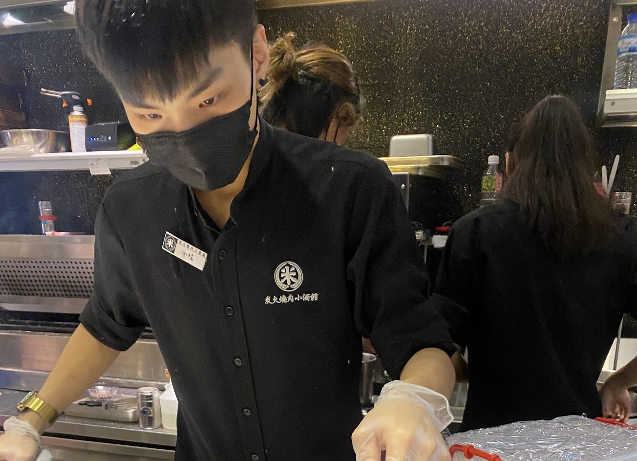 其中串燒、炸物及烤物只有一位人力負責,我們坐在吧檯,眼睜睜看著已烤好的雞肉串擱在一邊,等過了一段時間後才送上來(已變常溫),另炸物起鍋,油膩的樣態完全引不起食慾,再者,自己烤的品項也是等桌面清空一會兒了才再補(還要提醒服務人員送餐==)等。