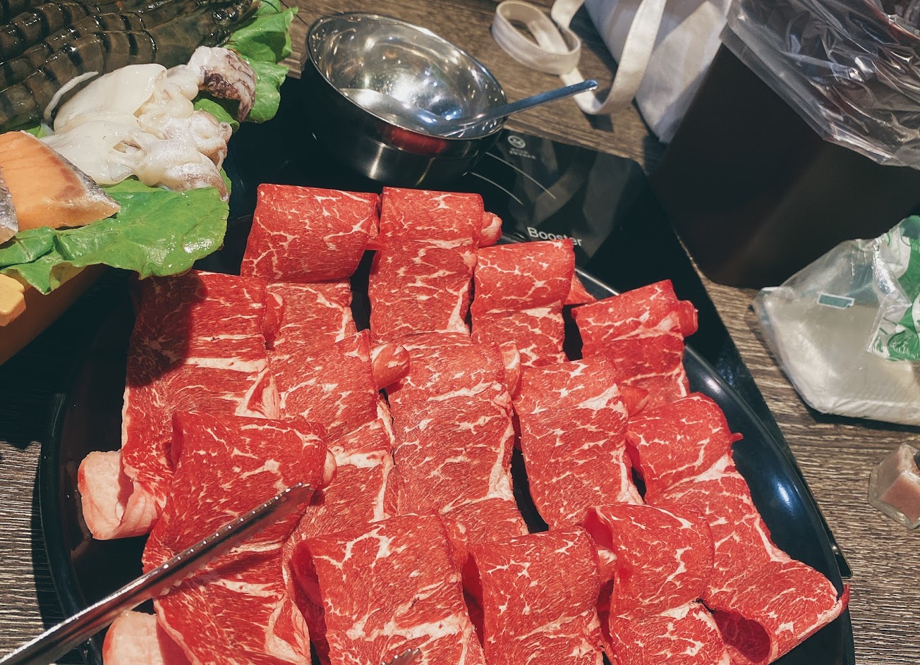 火鍋也很好吃,肉片照著店員教的方式煮真的超好吃,海鮮蛤蜊超大顆又新鮮,剛好有一顆蛤蜊有沙,想說難免,原本沒有要換,但店員一聽到有沙就立刻幫忙換一顆給我們,超貼心的!