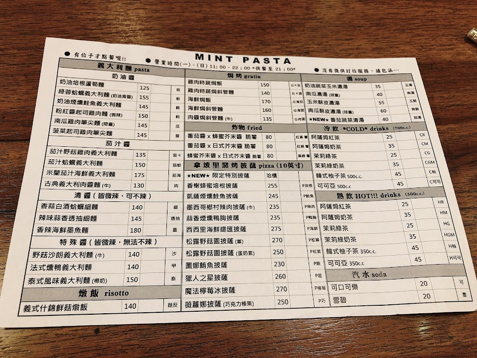 2024最新在地推薦餐廳的菜單_Mint Pasta 中原店的菜單、圖片