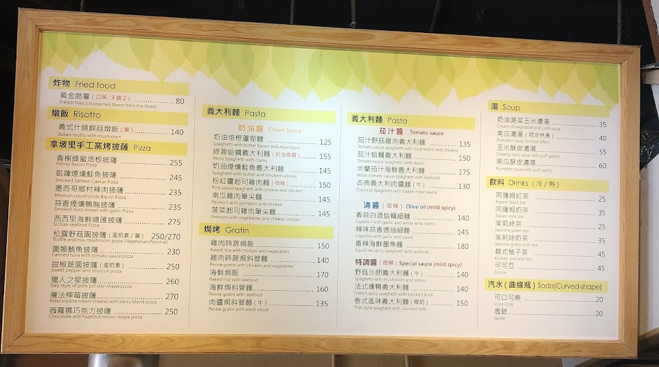 餐點總類精簡些,而手工pizza依然擄獲我的胃,座位不大但沒有時間限制是一個好友談天吃飯的好地方