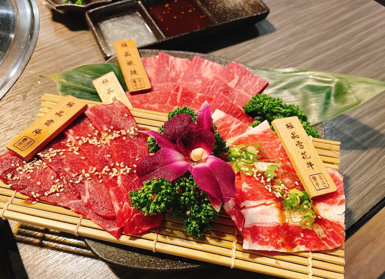 餐點選擇的是嚴選豚肉雙人套餐(醬燒梅花豬、嫩切豬五花、極品松阪豬)