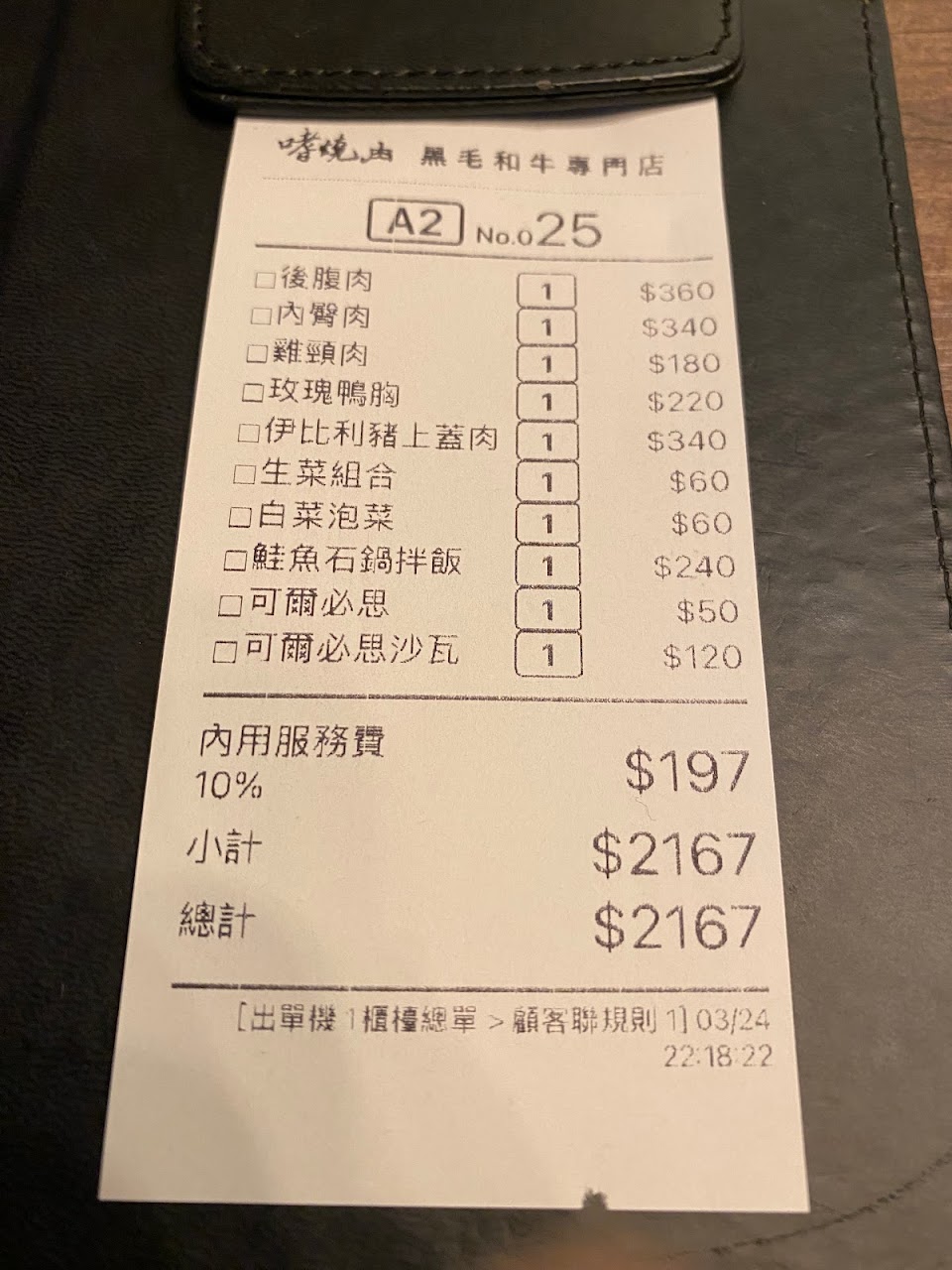 再來就是有人點了1500–1900金額的肉品⋯但是吃完後感到空虛⋯
