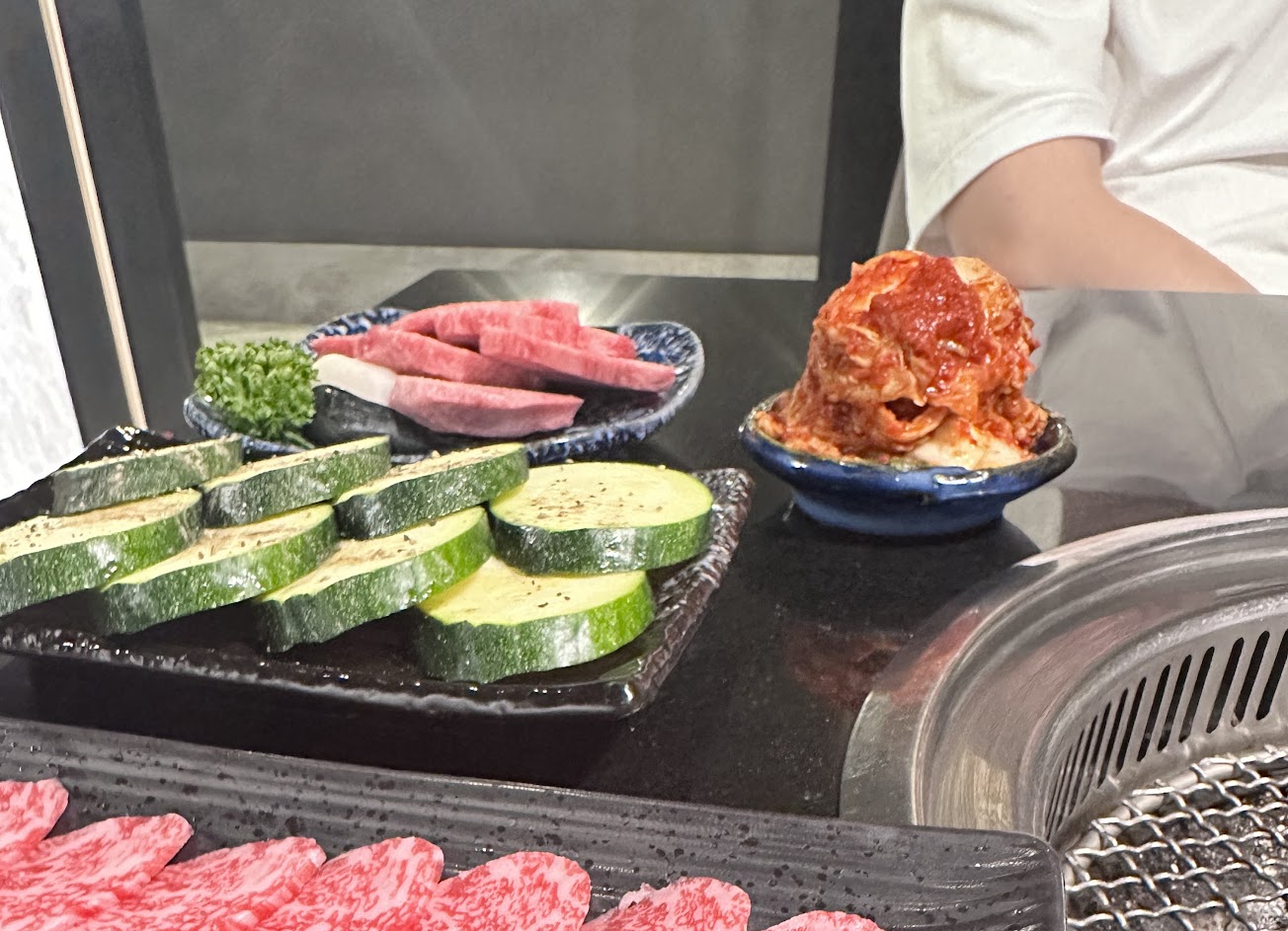 代烤的服務生在肉烤好夾到盤子上的時候肉掉到桌面上,默默地直接把肉夾回去盤子仿佛一切都沒發生,第一次品嘗到桌面美食。可能是人力吃緊所以會到處走動,但玉米烤到半邊焦掉應該也不是這家店的標準流程。邊看平板邊烤肉也許真的是不得已,也帶給人一種只是隨便烤烤的錯覺,這部分僅表達個人意見和評分無關。