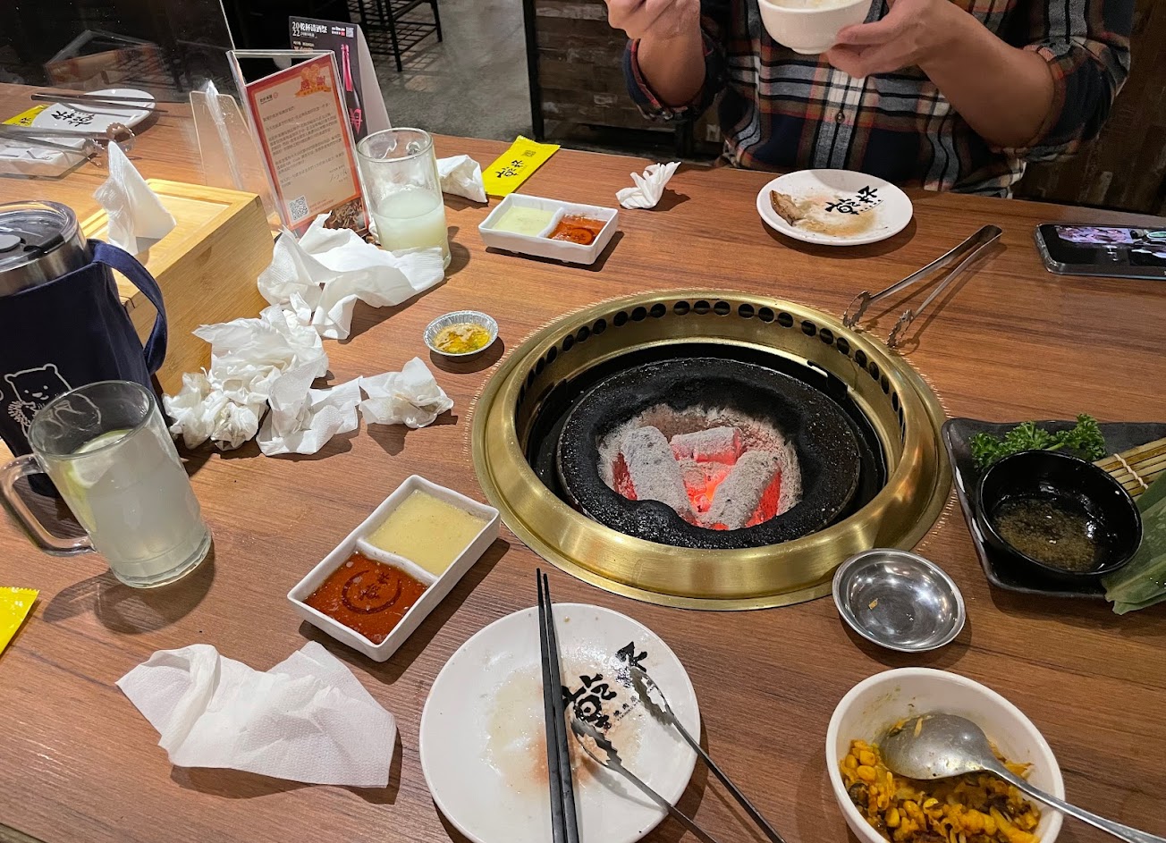 2/6 當天下午三點左右吧 的離峰時間 服務基本都可 只是覺得 以當下的人力與客量 應該可以更快替我們更換烤網 , 因為網子離炭火爐很近 ,隨便烤烤都會一直沾到爐子 ,導致肉片都黑黑的一層油(這應該店家都清楚 不知道為何還會用到現在?) 從照片能看出 ,我們需要一直用紙巾擦拭…… 直到我主動要求 才幫我們更換新網 下一次員工主動詢問是否換網時 我們已經都吃完要準備離席了 總的來說 體驗並不如預期 也不如身邊朋友說的那麼好 服務 內用 餐點類型 午餐
