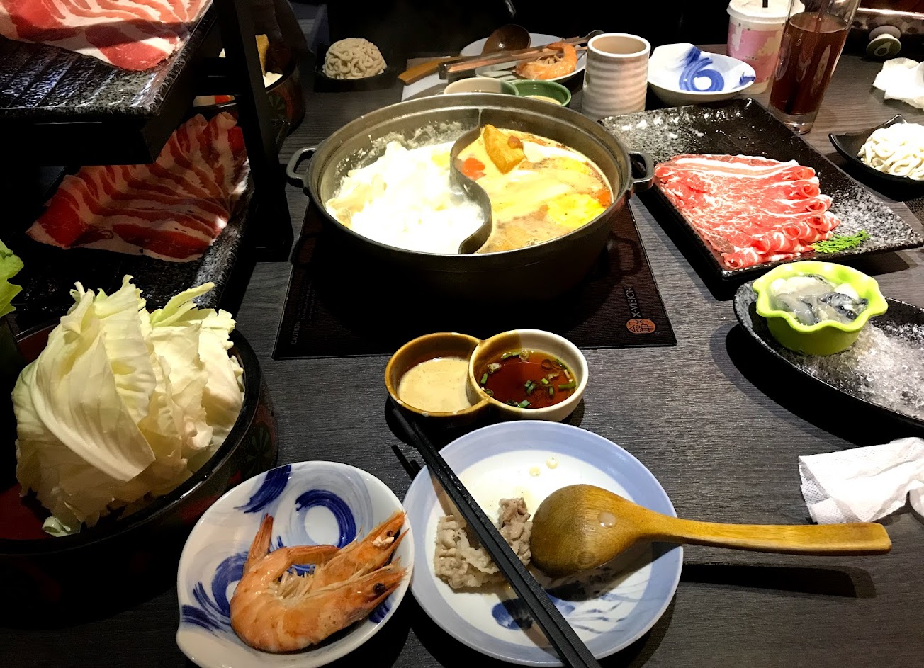 湯底偏鹹,招牌白湯及日式昆布都普通。今天點了四人套餐,肉品可選四種,還有驚為天人的海鮮船,超級豐盛,且品質都還算不錯。值得一提的是,桌面空間很大,且肉盤有用架子分層擺放,用餐時不會覺得卡卡的不方便。
