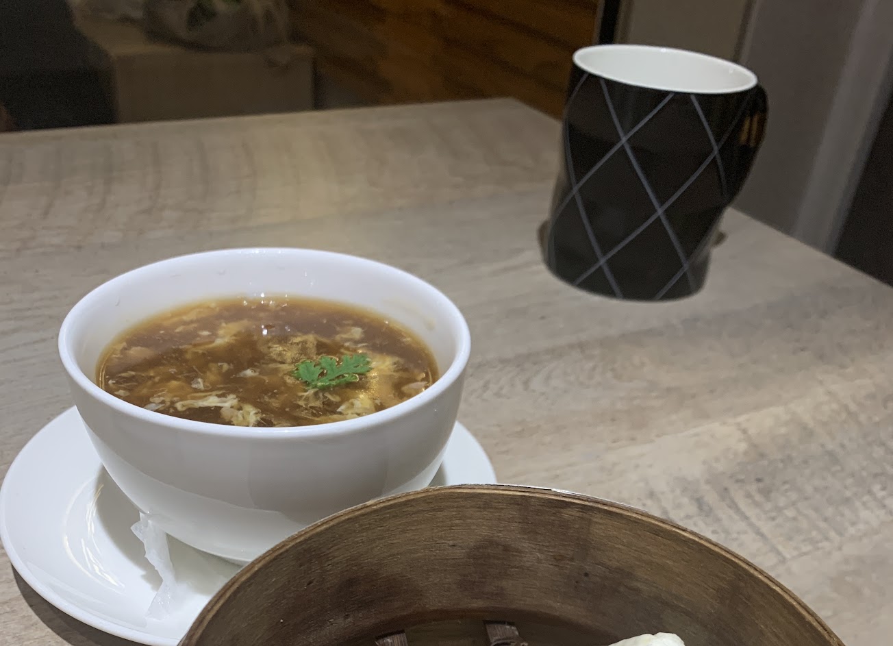 食物方面基本都還不錯,分類給得很足。推薦要點湯類,味道清淡但很有滋味,很大一甕,適合分享。不太喜歡的一點是海鮮類食物中用的蝦仁是口感最不好的那種冷凍蝦(如圖)。
