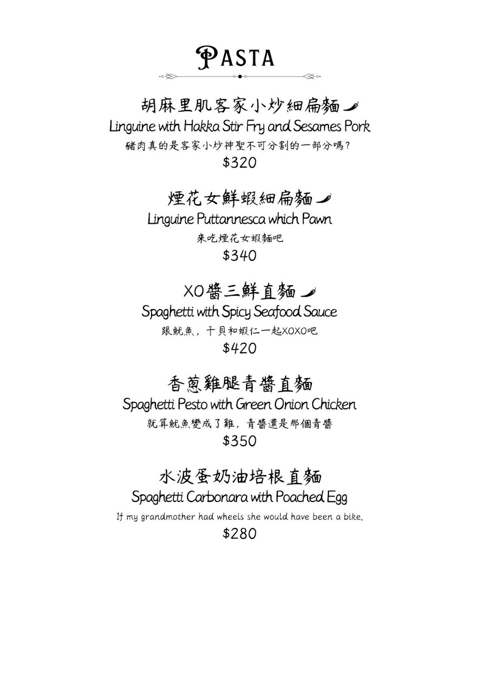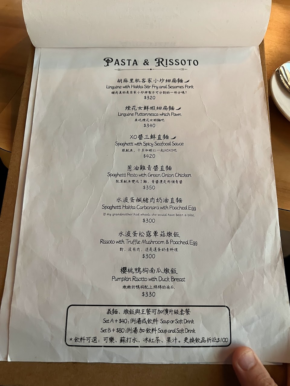 店裡還有餐點可以點喔!有義大利麵和一些小點,餐點走中西合併的創意路線~