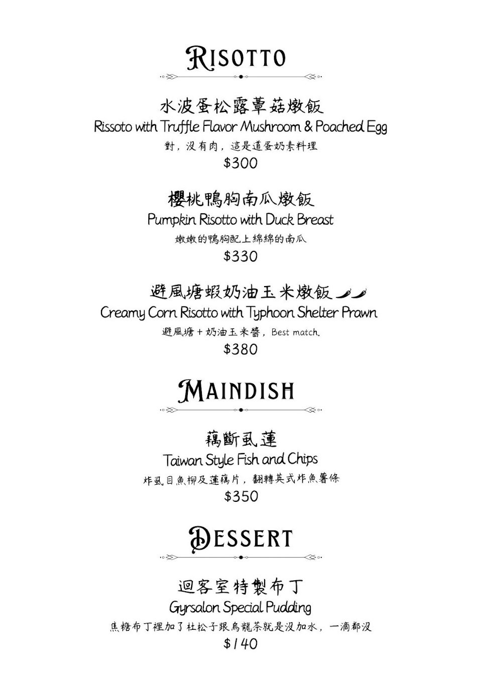 2024最新在地推薦餐廳的菜單_Gyrsalon迴客室 Bistro&Bar的菜單、圖片