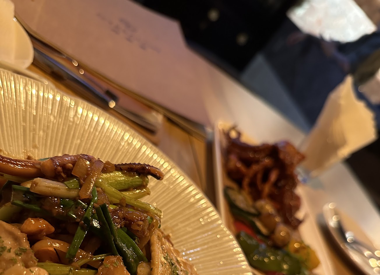 烤魷魚、章魚燒披薩、客家小炒直麵都好吃,更特別的是碳培烏梅威士忌,第一次喝到。還有招待壽星跟同桌友人各一杯烏龍味的shot,超酷的味道。下次還會再光顧~