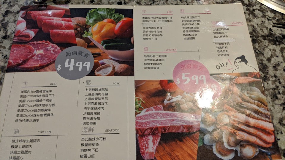 吃499的價位,若是吃肉吃到飽,可參考,若吃美味、精緻就要考慮。肉類普通,沾醬不錯吃,尤其是蔥塩好吃。