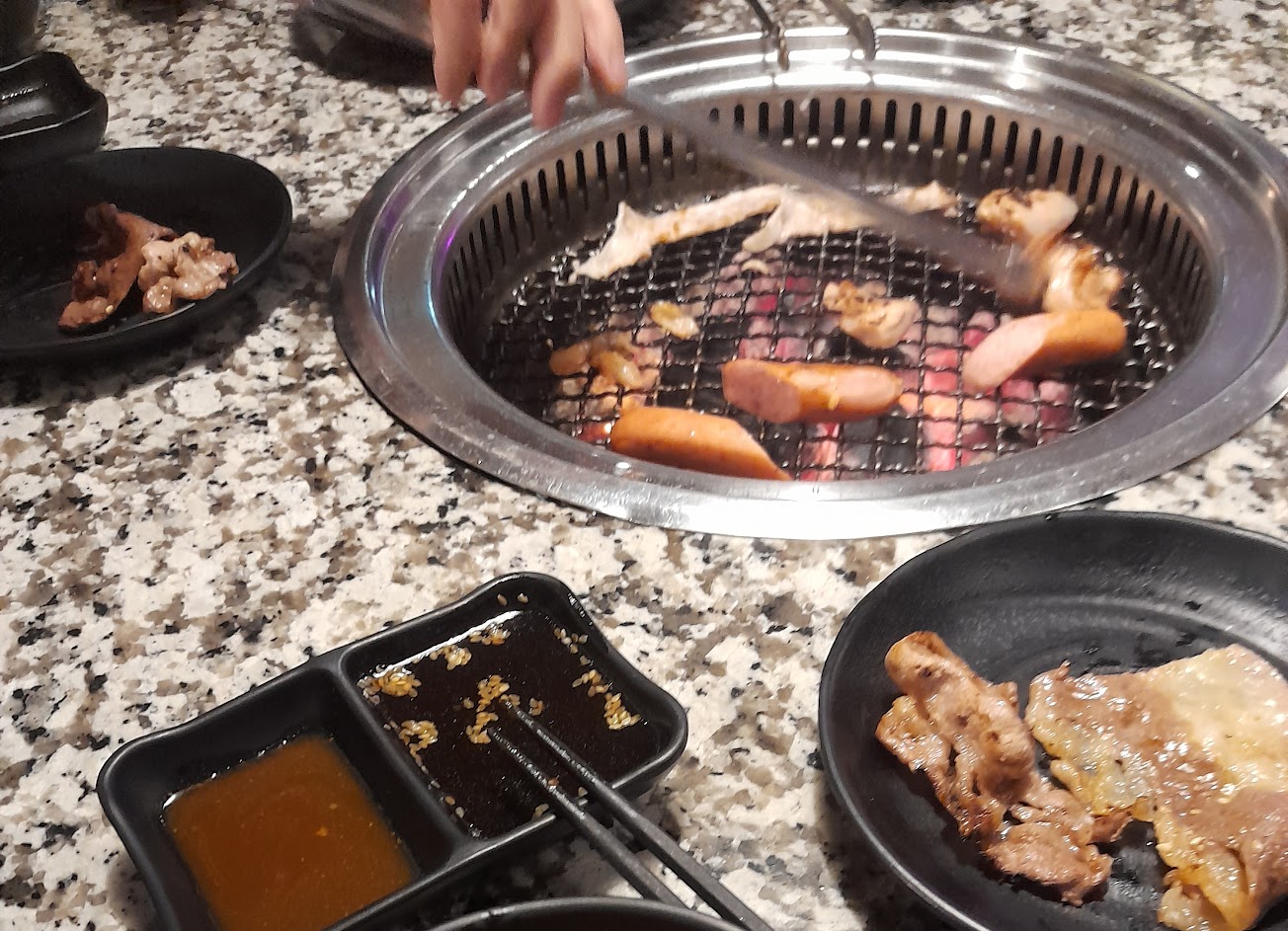 第一次吃真的覺得很雷 先講缺點好了 別桌走掉後地板垃圾都沒清卻直接帶新客 上肉盤子放很大力 桌上空盤一堆也沒有收 後來拿去給他們還被瞪? 烤網也幾乎不會主動幫忙換 問問題也都假裝沒聽到不然就直接走掉 每次給單子都要等好久 根本沒有在注意客人 再來最扯的就是單子上面寫要的數量 結果來的都只有一份 不然就是送錯和沒點到 一開始點了4份松阪豬 來了只有一份的量 後來點了6份 結果只來6片 接下來又點了10份 來了只有10片 後來最後加點時跟他們反應 詢問他們一份份量有多少 但似乎他們搞錯重點 最後我們再要了一份 結果來了一大盤 都準備吃甜點 也快吃不下了 真的覺得員工訓練可以再加強 我知道中秋節連假很忙很累 但基本該做的還是要做好吧 優點的部分是起司地瓜蠻有特色的也不錯吃 帶位時都會主動介紹菜單