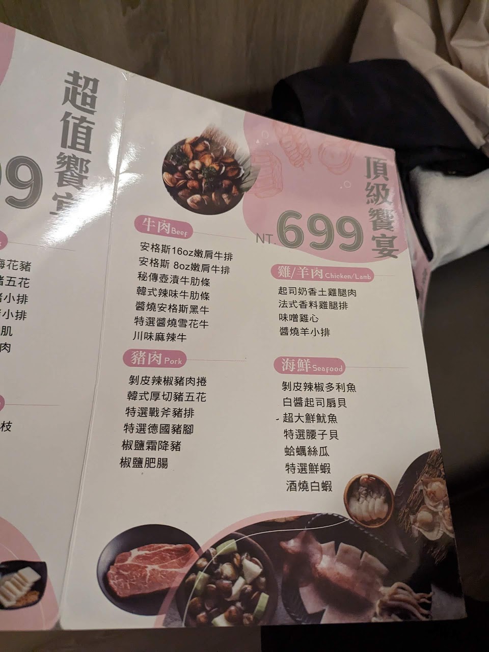 價格偏高,一個人最便宜要大約635(已加服務費)但即便是最便宜的套餐,肉類種類也是不少,這次點的套餐也是635的