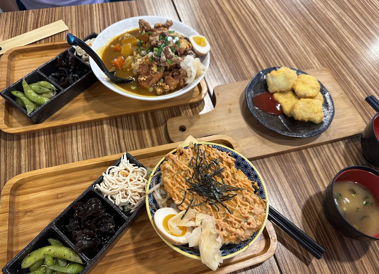 好吃,份量非常足夠!味增湯料好實在免費喝,賣茶清涼爽口免費喝。舒適的環境,裏面超適合拍網美照,每個角落都是老闆用心佈置的美景。所以~食材味道更是絕妙~