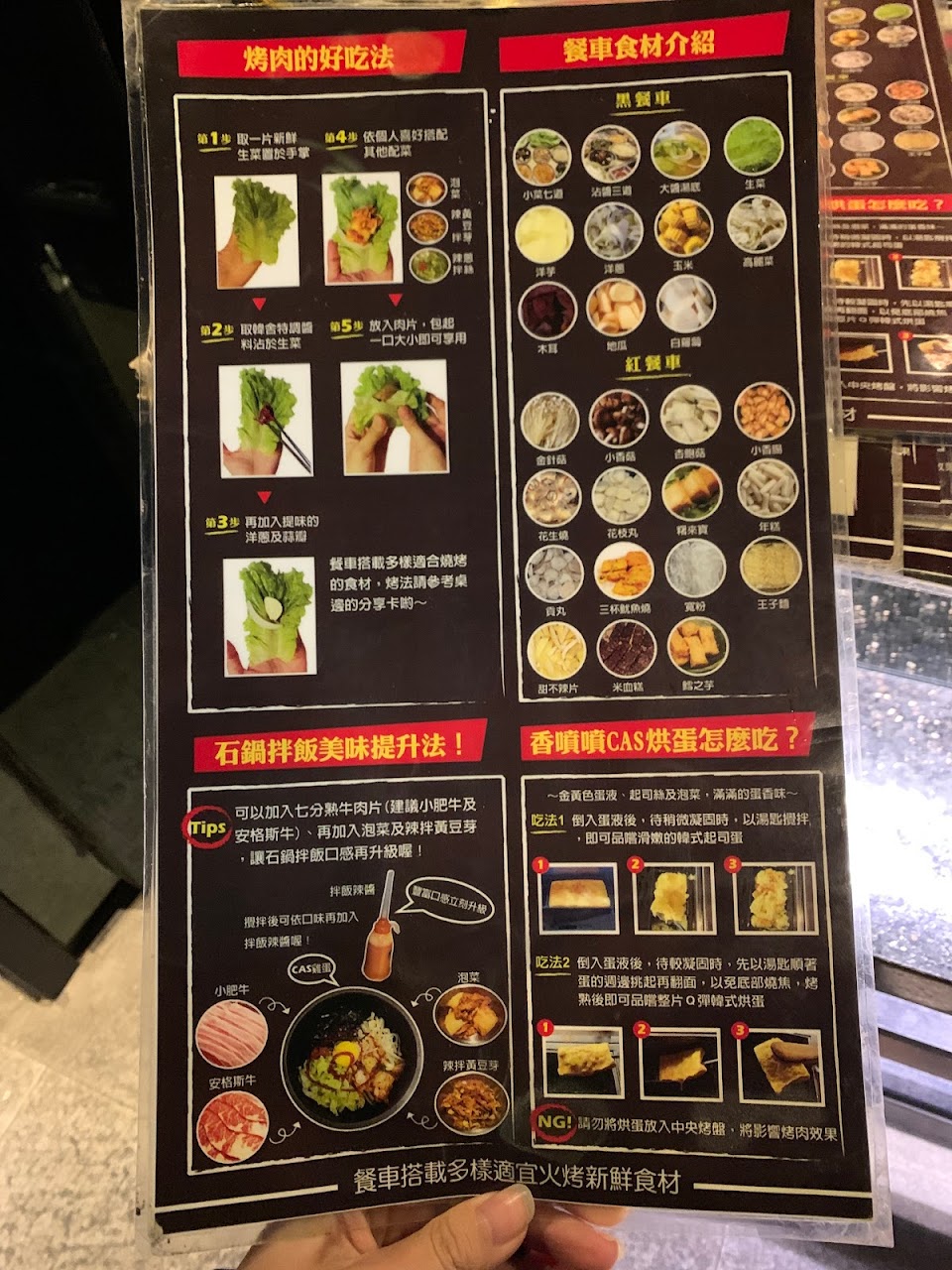 肉類款式太少、吃完整人都是油煙味,開始用餐前走到位置的路上就瞄ㄧ下環境,覺得黏黏膩膩的,吃到飽的鍋類餐車,金針菇給2-3撮其餘都是魚漿餃類的,韓式小菜不精緻味道頗怪,白飯超硬,最重要是燒肉給的醬料只有3種,胡椒鹽巴都沒有….整體就是「台式的吃到飽火烤2吃」
