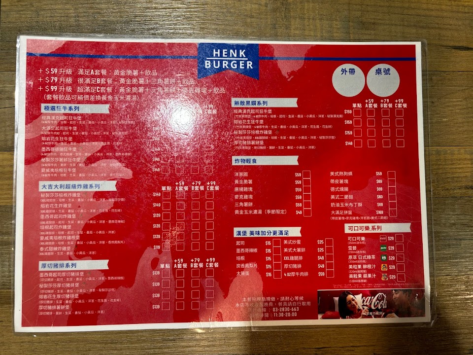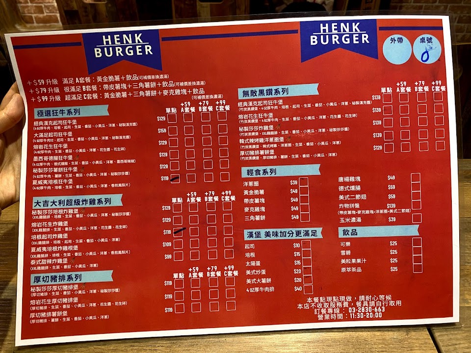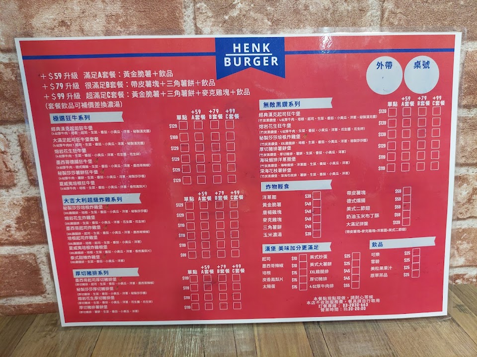 2024最新在地推薦餐廳的菜單_HENK BURGER 美式手作漢堡的菜單、圖片