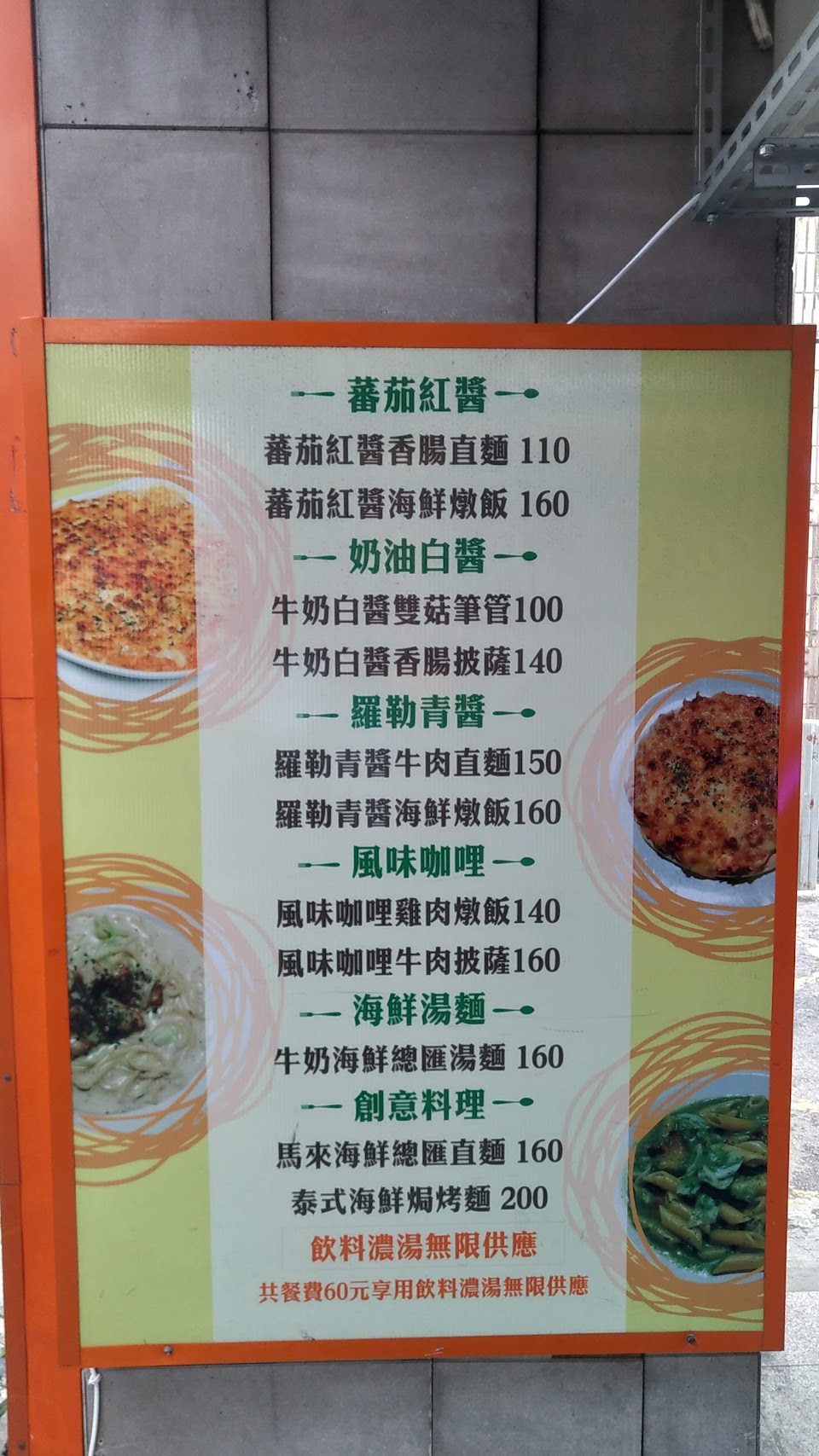 乏善可陳,學生消費型餐廳,湯跟飲料喝到飽。但是湯偏稀。我點的是泰式海鮮麵,醬湯就只是泰式酸辣湯的罐頭調味,而且超級鹹,感覺是每一種醬都放一點,每一種都很鹹。然後筆管麵只有剛好熟,有一點生味,專賣義大利麵的店不應該沒掌握好這點。海鮮吃起來是沒腥味,這是少數可取的優點,但也不知道是不是醬料太重把味道壓過去了。總之這樣一餐190實在好貴,雖然沒有到非常難吃,所以給予中庸的三星,但我不推薦。