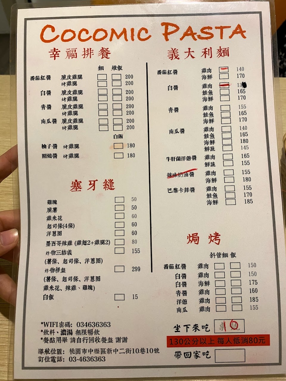 2024最新在地推薦餐廳的菜單_Cocomic 義大利麵的菜單、圖片