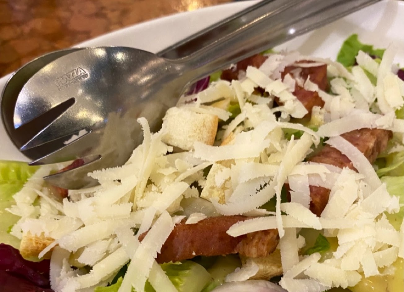 今天點了綜合海鮮番茄蕾絲寬帶麵,有超過10隻蛤蜊,三隻蝦,和幾塊小卷(不是照片上的一隻)看起來料多味美。只是醬太鹹,連配兩大杯水。吃到一顆蛤蜊滿嘴沙,在服務生來收拾桌面時,請她提醒一下廚房要留意,當下只說好,就把盤子端走,因連臺灣慣用口頭禪–不好意思也沒有,我心裡還盤算著,如果主管了致意,我要如何大器的回應,結果是我想太多了? …