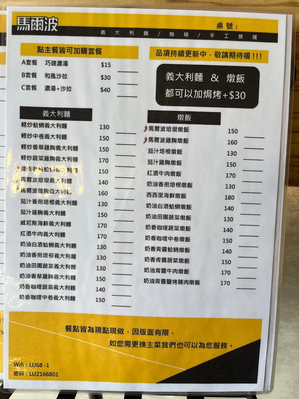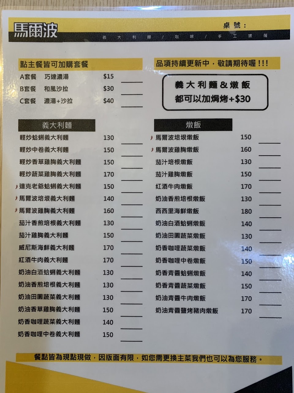 2024最新在地推薦餐廳的菜單_馬爾波 Marbo / 義大利麵 / 手工 Pizza的菜單、圖片