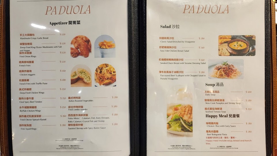 2024最新在地推薦餐廳的菜單_帕朵拉義式餐廳 青埔環球A19店的菜單、圖片