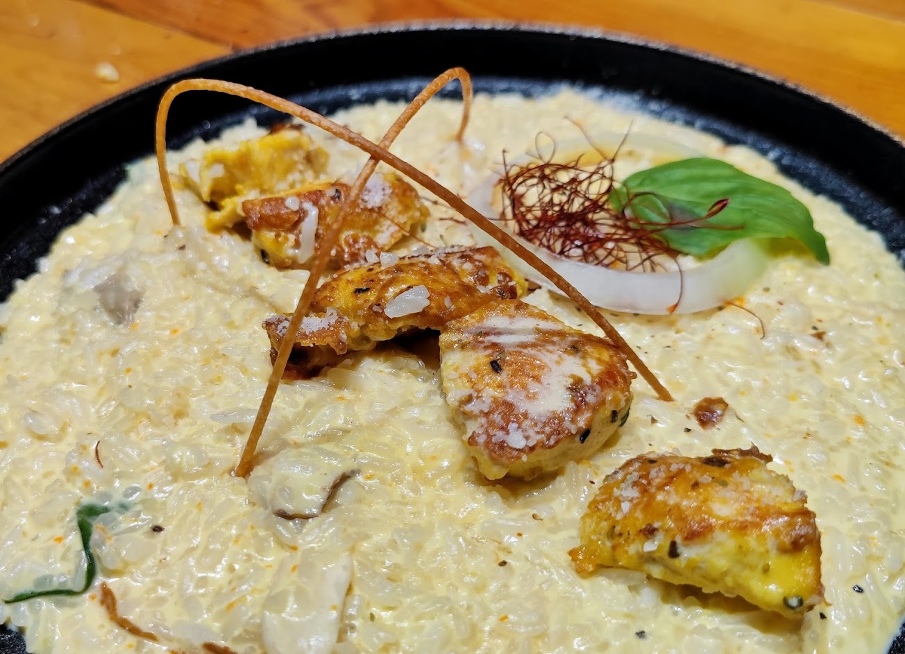 燉飯口感是一般那種米心偏硬的,我覺得240價格偏高,因為量不多,配料也算少,如果食量大的,一定要再多點其他餐點。雞肉⋯不知道為什麼沒香味也偏柴,可能廚師太累了烹調失常⋯。