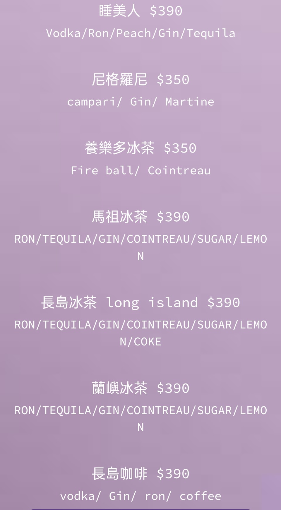 環境舒適,酒水好喝低消合理,重點還有實力不錯的歌手駐唱,中壢晚上的好去處!