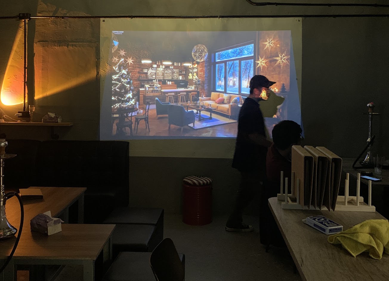 太chill 了 投影幕超棒??很適合放鬆聊天 …