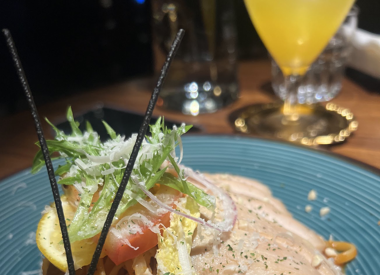 我們在新年試運營期間第一次光顧這家餐館,點了德式香腸,大蝦意大利面,紙包鱸魚,蛤蜊甜菜根湯。每一道都讓我們感到驚艷,驚喜連連。不管是服務員倒出紅色的甜菜根湯在鋪滿新鮮蛤蜊的湯盤上,還是調酒師分別在德氏香腸和紙包鱸魚上噴出不同酒精的火焰,既有表演的驚喜感,也儀式感滿滿。而且味道真的都非常好。調酒師為了幫我們慶祝新年,還送了我們他們特製的花生威士忌以及水果酒,味道都非常特別好喝,最後還招待了我們玉米味道濃郁的墨西哥餅以及炸花生湯圓,真的是一次非常特別且開心的體驗!