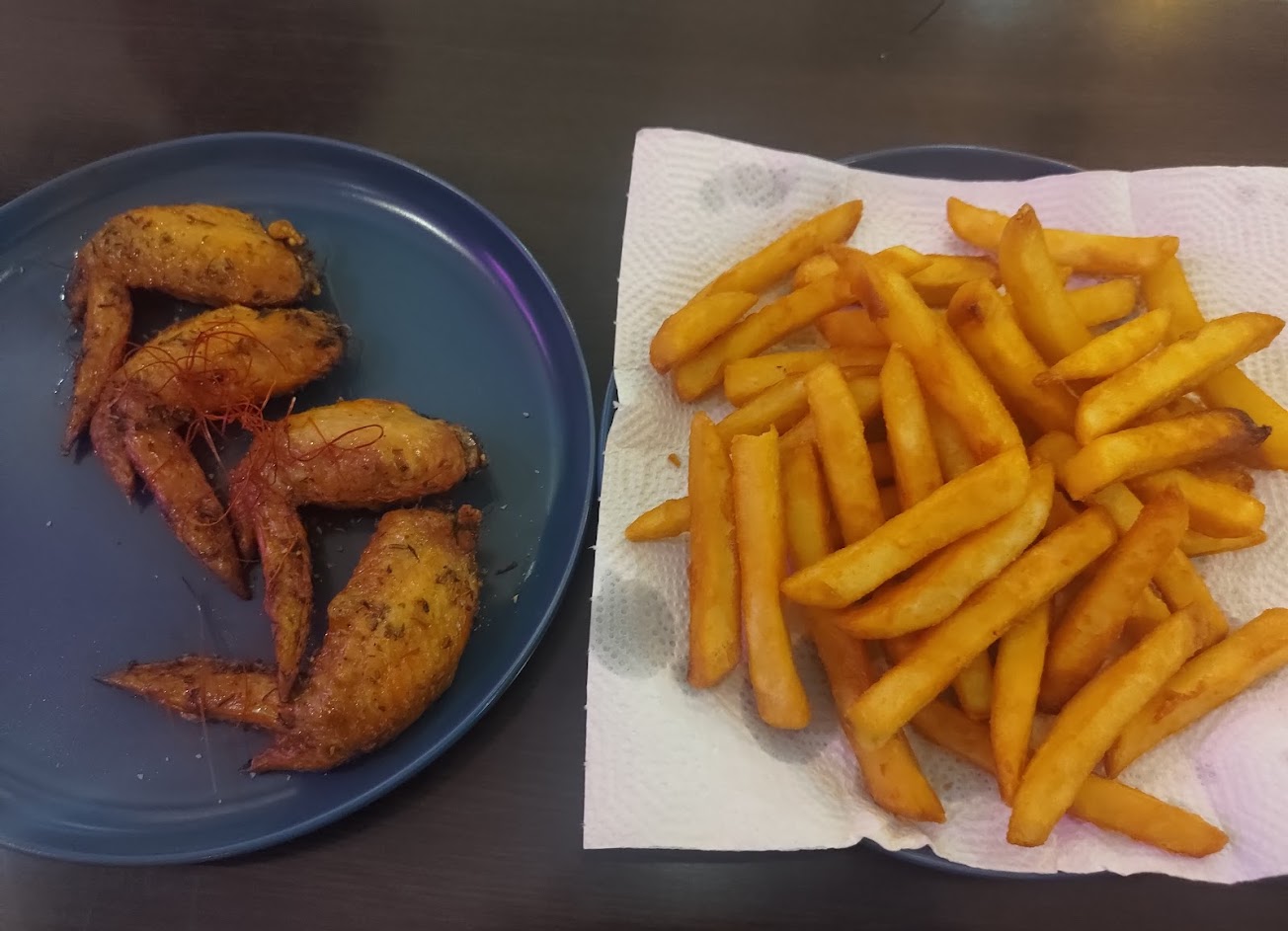 涼伴花椰菜、梅子小番茄、銷魂荷包蛋、韓式宮廷白蘿蔔、現烤蜜汁去骨雞腿、秘製鹹豬肉、現炒打拋豬肉,八點過後炸物拼盤正松露薯條,四百八十妹歪壞。