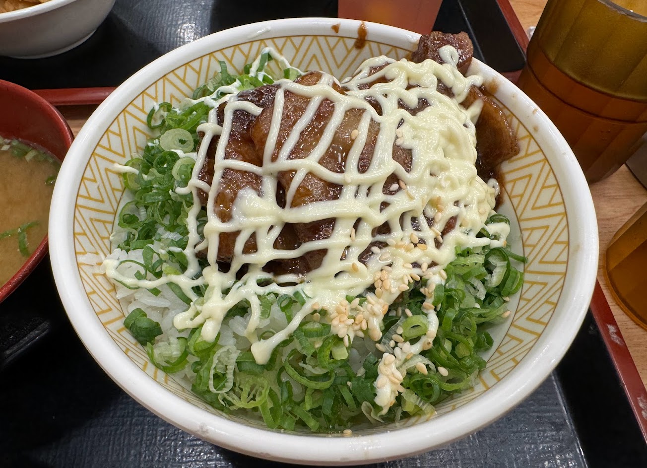 丼飯普通,但最不推薦牛肉牛燒肉雙拼丼,肉質非常普通,菜偏苦澀。炸物可樂餅偏乾,唐揚雞麵粉包裹比肉還多。