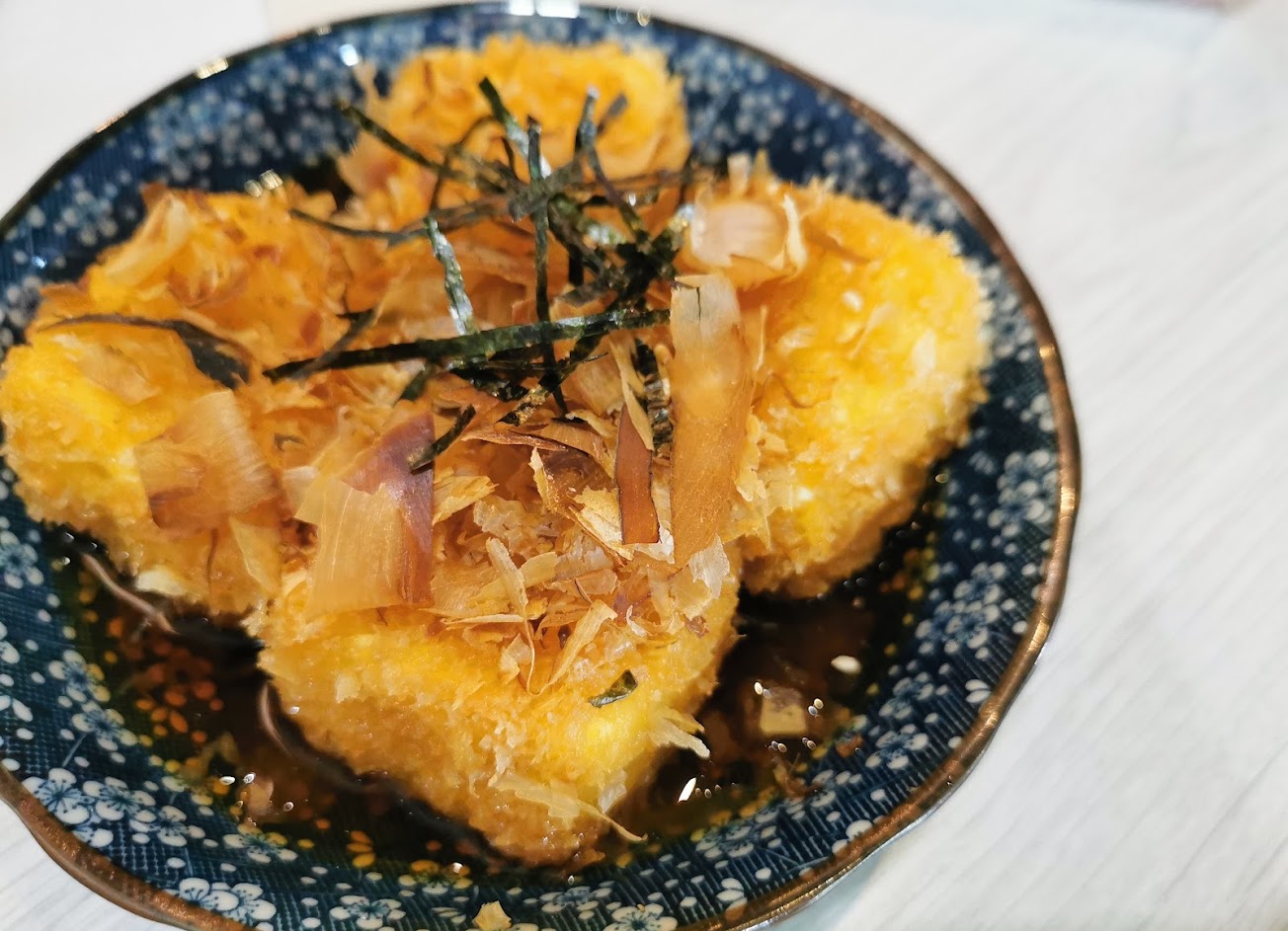烏龍麵Q彈,楊出豆腐外脆內嫩,好吃