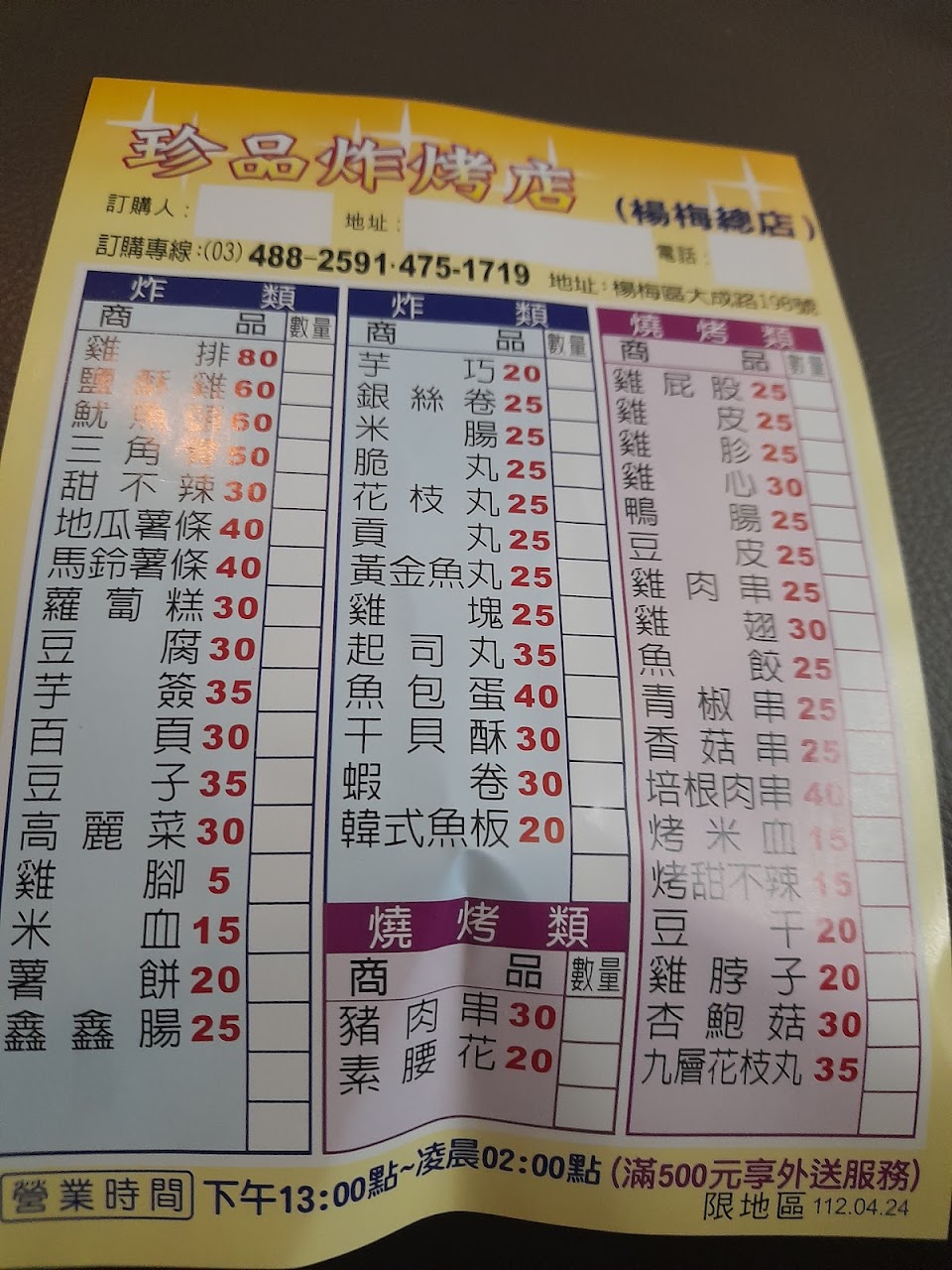 烤炸物好吃,人員親切,動作很快
