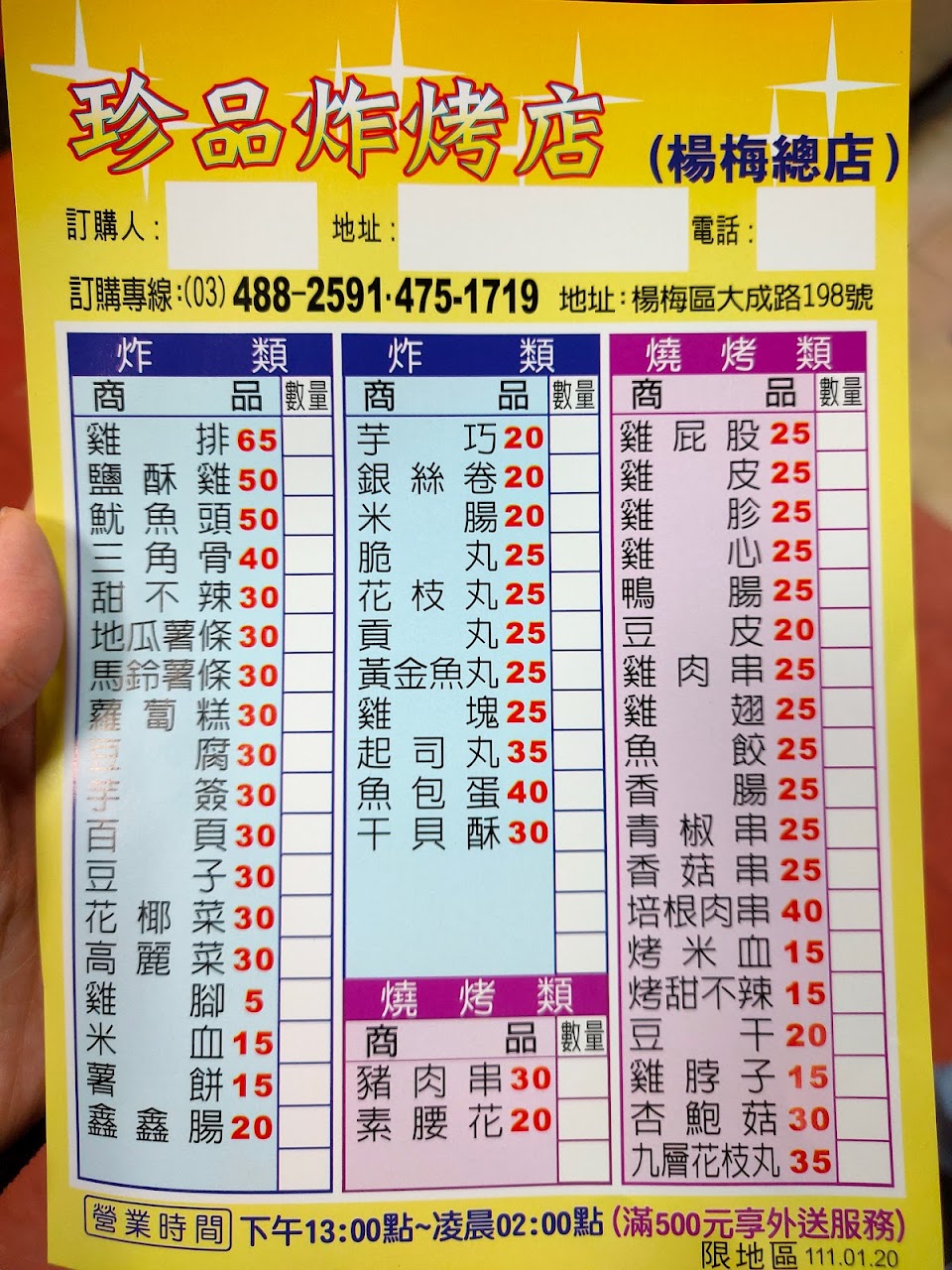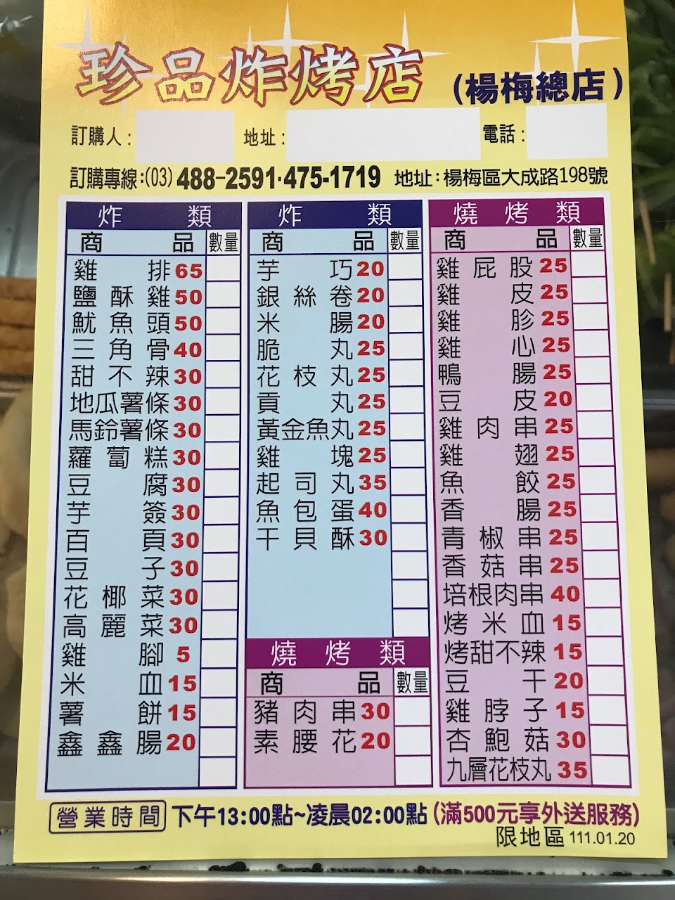 東西經濟實惠,食材烹調方式有炸有烤 非常享受,深夜常常大排長龍, 也有合作的外送平台,可以不用現場等