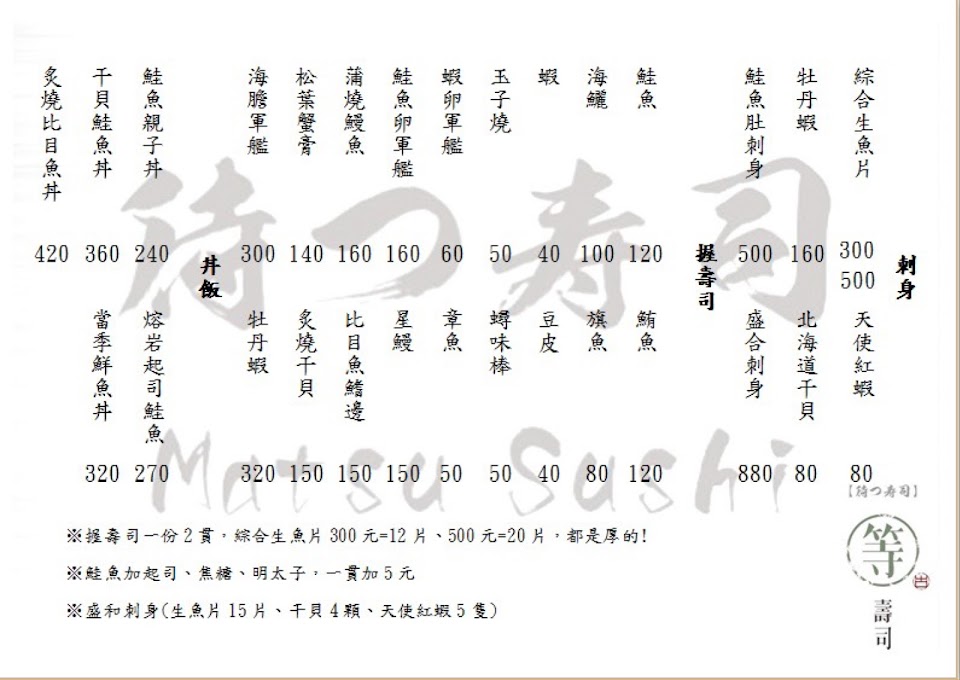 感覺老闆生意剛起步,沒有店面,可能是在自家樓下騎樓擺了個攤子,放了兩張桌子椅子就憑著自己的功夫賣起了壽司跟生魚片,其手藝還不錯,餐點也好吃,相信爾後座位有增加,其生意及客人會更好更多,用餐有附自行取用的鮭魚味噌湯,但湯的熱度老闆要再多注意,天涼了,大家也想喝碗熱熱的湯, 畢竟生魚片及壽司是比較沒有溫度的餐點,熱湯下肚,會比較有用了份正常餐點的感覺,分數也會更高。