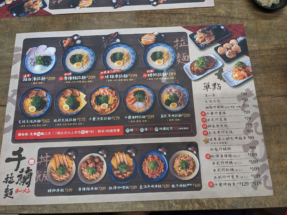 千蘭拉麵,餐點用心湯頭鮮美,是來楊梅的必經之地,感謝老板的用心,才讓我們可以吃到美味的拉麵 餐點:5 服務:5 氣氛:5