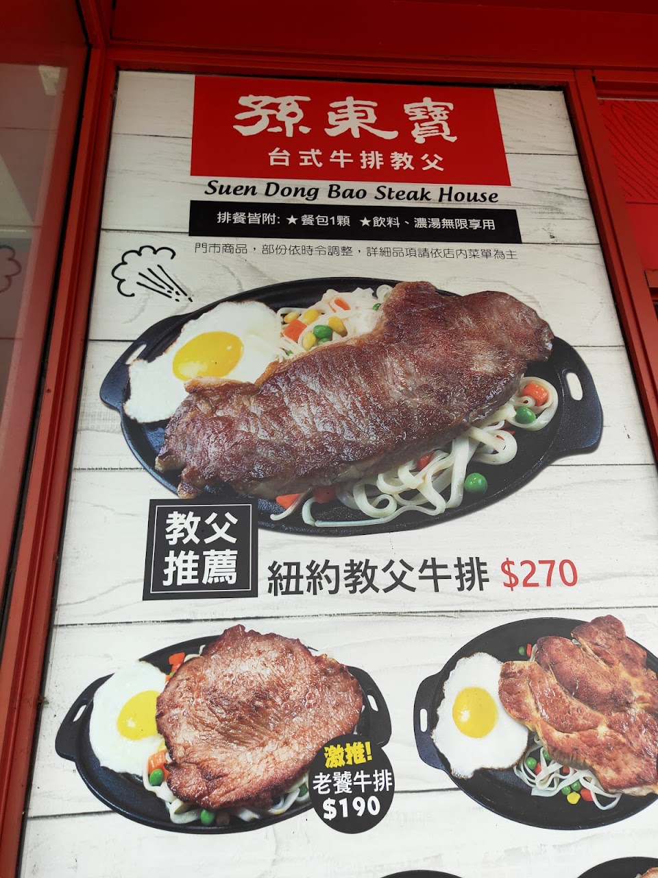 ❤️久聞孫東寶名聲,埔心最近新開幕了這家分店,今天特地前來嚐鮮,今天點了老饕、板腱、沙朗三種牛排,都是點七分熟,老饕、板腱蘑菇醬,沙朗不加醬,蘑菇醬我覺得鹹甜適中,牛肉味道都不錯,個人比較喜歡板腱的口感有嚼勁有不會太老。鐵板麵味道也不錯不會太軟。 玉米濃湯不是一般只有太白粉勾芡兩三顆玉米加點胡蘿蔔絲,是有火腿絲、蘑菇片的湯,而且量還不少。 ?餐包是爆漿餐包,個人喜好將奶油內餡嗑掉後沾著玉米濃湯食用。❤️飲料我是喝紅茶,甜度適中,不會覺得是那種加了很多水被稀釋的紅茶水。沙朗牛排肉質軟嫩、多汁,點餐首選;胃口大的人可以點超大塊牛排,真的蠻大塊的,牛排是摺疊兩層或是有點像牛肉捲起來的樣子,還是強調真的很大塊,至於味道還好,肉質要看運氣,有的很嫩但也有多筋的部位,但以平價牛排的表現是很不錯的。?玉米濃湯料理的非常好,平常不太喝這種湯的我都喝了三碗。?汽水可樂要另外花錢買,這一點與其他同級牛排店經營方式不同。