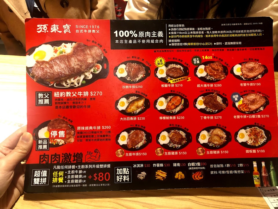不到晚餐時間查一下孫東寶店家。發現楊梅三民店營業中。其它店都還在休息。很高興的停好車跨入店家發現我們是今晚第一名。點了人氣組的紐約教父來個5分熟。好久沒吃這樣的鐵板牛肉了果然5分熟甚是鮮嫩,可惜刀子不給力只好用力用鋸的鋸下一小片來吃。看在肉質鮮美的份上就不再嫌棄刀子不利了。