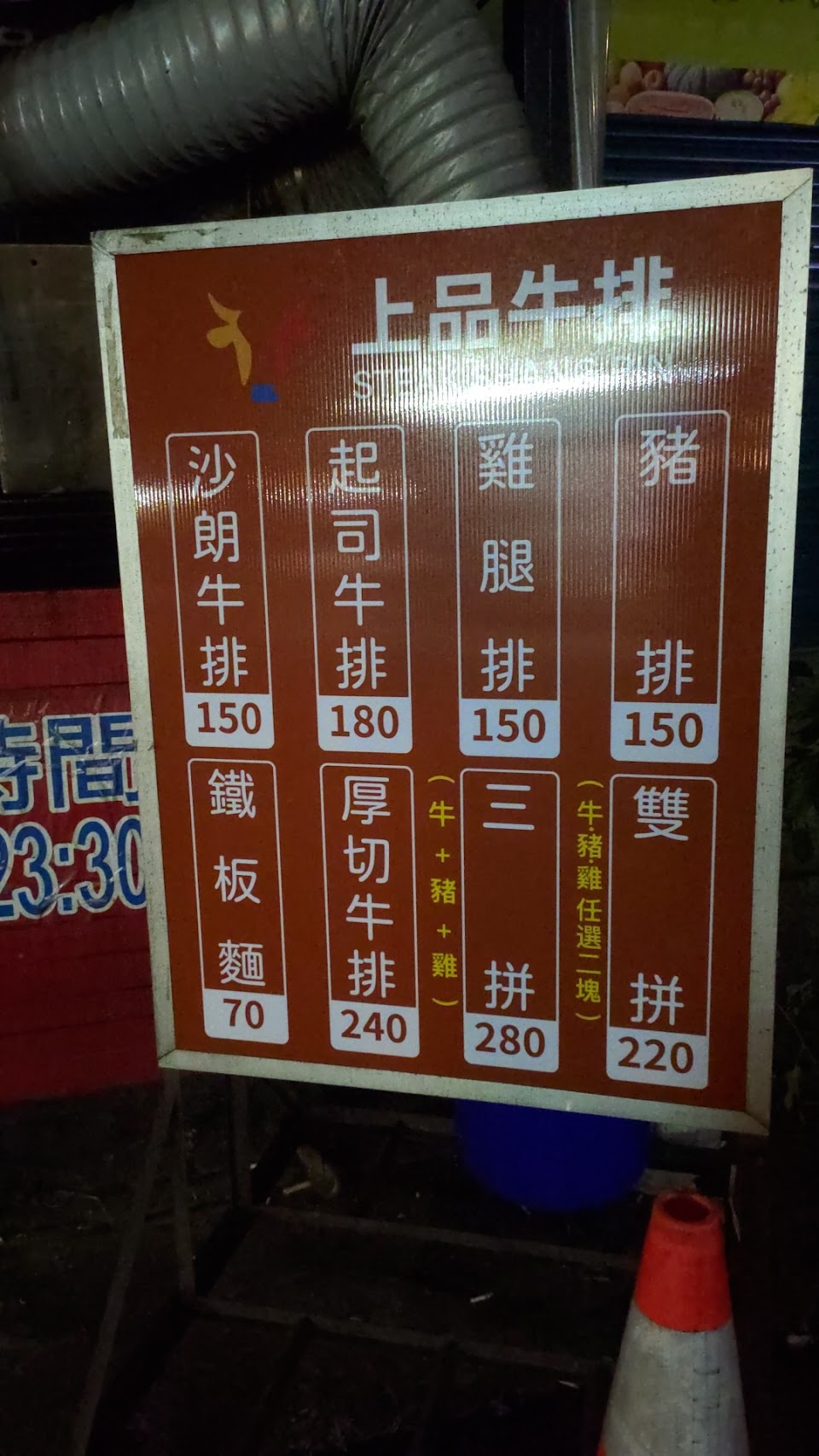 在萬大黃昏市場邊,我覺得以夜市牛排標準來說是好吃的:我們約晚上9點半去用餐,內用也還有2桌;小孩點雙牛,肉質鮮嫩,醬汁調味Good,附餐的玉米湯也好喝,麵體有麵條或通心粉可以選,我們是吃麵條,不錯!
